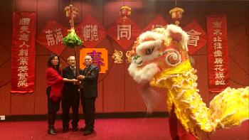 (紐約.留天佑4日報導)紐約南海順德同鄉會假華埠舉行春宴敬老暨頒發獎學金活動,數百鄉親和嘉賓參加,醒獅助慶採青(圖),氣氛熱烈。
