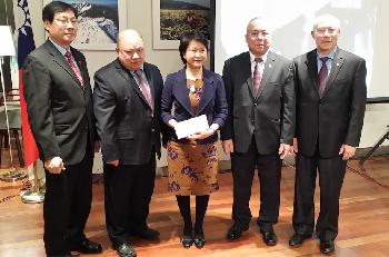美洲協勝公會、美國洪門致公總堂伍煥鵬總顧問,偕紐約洪門致公堂袁燦章、李偉強兩位主席及紐約協勝公會陳庭威和伍文達主席,將募得救濟南台灣地震款項共2萬元,交給徐儷文大使轉交紐約華僑文教服務中心王映陽主任,並將透過僑務委員會轉致災區,現場含美國安良工商會鄧錦源總理等三堂僑領觀禮,日前紐約安良工商總會亦捐款1萬零238元,三堂累計捐款共3萬零238元。