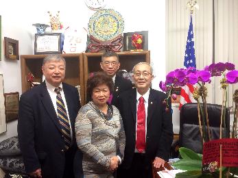 蕭貴源發言時感謝鄭永佳來訪,他說,中華公所作為僑社之首,目標在於維護僑胞利益,在美國工作生活,成為國家的一份子。