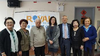 一項針對長者受虐待講座,昨日在法拉盛福壽老人中心舉行,由康怡護理公司亞裔市場總監黃雪莉(右四)主講,讓華人長者了解自己是否受到虐待,並要及時向有關單位投訴,右三為法拉盛福壽老人中心主任王能。(圖:羊展恬)