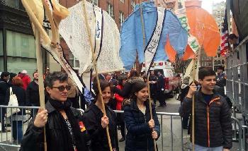 (紐約.留天佑報導)今年是紐約「三角衣廠」(Triangle Shirtwaist Factory)大火悲劇105週年,一批車衣工人、勞工界代表及民選官員昨在華盛頓廣場旁的原衣廠大樓外舉行紀念會,為當年的146位、以新移民為主的遇難者鳴鐘獻花,祈求悲劇不再重演。