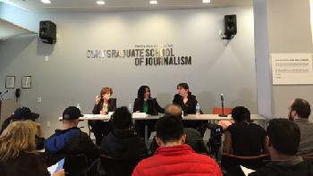 紐約市立大學少數族裔與社區媒體中心,邀請聯邦公民及移民服務局(USCIS)紐約地區主任柯雯(Phyllis Coven)、曼哈頓地區檢察署移民事務科共同主任李維拉(Mayerling Rivera)及紐約移民聯盟法務主任麥可樂(Camille Mackler),談論近期利用移民改革、移民行政令等新消息頻出,針對移民社區的詐騙案。