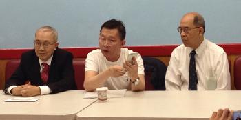 (紐約.留天佑6日報導)一名57歲華裔男子疑被騙婚騙財,在分產前夕,昨日他決定將百萬元財產,捐予紐約中華公所,作教育及慈善用途。華男李錦光(圖中)昨在律師陪同下,來到中華公所召開記者會,開出100萬元支票交予公所主席蕭貴源。