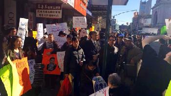 (紐約.留天佑13日報導)一批租金穩定公寓住戶及關注人士,昨日在華埠包厘街83-85號前示威,反對業主「逼遷」。保護華埠和下東城聯盟代表指,希望得到市府的關注,讓華埠工作小組的「土改計劃」正式納入政府規劃議程。