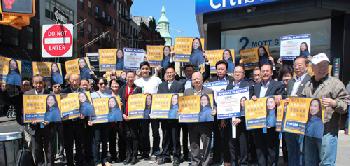 (紐約.留天佑18日報導)紐約州65選區眾議員補選明天舉行,勞動家庭黨參選人牛毓琳週末一連兩天,參加由多個華人社團聯合組織的造勢活動。昨日她在競選團隊陪同下,由華埠地威臣街出發,經包厘街、窩富街、勿街、擺也街,拜訪逾百小商家,沿途向選民尋求支持。