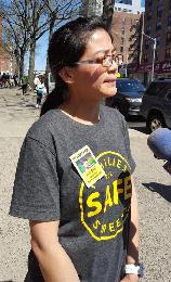 三年前曾在法拉盛遭車禍撞死華裔女童廖怡君的母親譚佩恩昨日出席記者會,以自身慘痛經歷要求交通局重視行人安全。(圖:羊展恬攝)