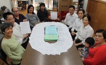 華人職工會(圖)昨日給市長發表公開信,又將月來收集到,來自華人社區近2000人的簽名送交市府。會方促請政府賠償給非裔受害者葛利家人、承認梁彼得是市府錯誤政策的受害、立即修理好所有政府樓,停止「親地產開發商的政策」,以及促請在案發後,呼籲檢控梁的市議員陳倩雯引咎辭職。