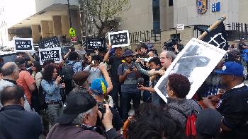 支持死者葛利的非裔人士及亞裔反暴力聯盟成員在現場示威,高呼「梁彼得坐牢」,「為葛利討正義」,「生命至關重要」等口號,並高舉著葛利以及歷史上被警察槍殺的照片,要求正義必須得到伸張。