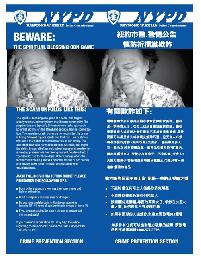 (紐約.留天佑21日報導)天氣回暖,「祈福黨」及其他罪案都有所增長。市警華埠5分局證實,日前有一名華婦受騙徒所哄騙,涉及金額也為同類案件中最高。市警總局社區事務部稱,祈福騙案手法層出不窮,且沒有因個別被告被定罪而停止,僑胞應小心提防。