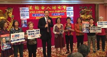 (紐約.留天佑11日報導)美國華人婦女會昨日舉行每月點心早餐會並賀母親節,民主黨國會議員參選人利勇民與會(圖),向在場的母親致意。