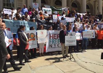 (紐約.留天佑13日報導)多個社區組織的代表們昨日齊聚市政廳門外發聲,期望透過一些列措施,在繼續向民眾宣導病毒性肝炎知識的同時,逐步增強對肝炎檢查的力度、擴大受檢人群。