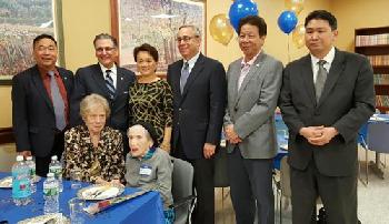 昨日會中唯一華裔百歲人瑞因身體不適未能出席,但仍有眾多華韓社區領袖甘台寧、羅維宗、任柏年等代表出席向百歲耆老致賀。其中109歲女人瑞Adele Levner在女兒Terry Kaufman陪伴下出席活動,女兒Kaufman表示母親在紐約市出生長大是一位畫家,生性樂觀進取,特別重視教育,在晚年時也是「活到老,學到老」積極向上,在83歲那年還拿到大學文憑,也在社區轟動一時。在記者詢問母親的長壽之道時,她表示「中庸之道」是母親長壽的秘訣。