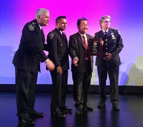 另外,法拉盛華商會總幹事杜彼得昨晚成為20位獲得移民社區服務領袖獎得獎及企業之一,這個由市警總局移民服務處主辦的頒獎典禮,在曼哈頓上城歷史博物館舉行,得獎華人還包括華策會人瑞中心主任伍寶玲,華策會布碌崙辦公事主任陳偉儀,出席典禮人士還包括紐約市警社區事務局局長Steven Griffith,市警總局社區事務處警探杜淑嫻及109分局前局長康福提等人。杜彼得對於獲獎表示殊榮,並認為如果沒有警察的維護社區治安,社區居民無法安居樂業及繁榮發展,協助警方工作也是作為市民應有的責任。