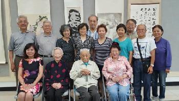 (紐約.羊展恬3日報導)紐約華人社區知名百歲人瑞現年103歲的書法家丁兆麟及99歲夫人丁紀鳳,將在本月4日起一連兩天,在紐約華僑文教中心舉行「雙百歲書畫聯展」,日前在文教中心舉行記者會,由丁兆麟弟子紐約華夏書法會會長孫載民等眾多弟子日前齊聚一堂,祝賀兩人能在百歲時一起展出作品。