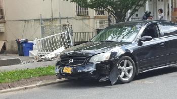 (明報7日訊)根據警方消息,由華裔青年駕駛的一輛尼桑(Nissan)日產四門黑色轎車,昨日下午兩點半左右行經法拉盛45大道上時,因故衝入路邊的一家民宅,撞斷該住宅院子的圍欄,幸好當時沒有路人在旁,但肇事車輛車頭損毀無法使用,卻把剛好在家的屋主林姓男子嚇一大跳。