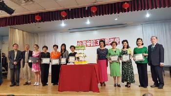 理事長陳春蘭及老人中心董事長陳隆豐等人也向台灣會館服務的義工及會員頒發感謝獎狀並與多位會館理事一起切蛋糕並高唱生日快樂歌,祝賀會館30歲生日。