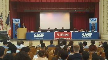 (紐約24日訊)隨著暑假的到來,目前也是紐約市各個學校舉行畢業及結業式的日子。由知名企業集團AT&T及市議員顧雅明辦公室等贊助支持的「體育及藝術學校基金會(the Sports & Arts in Schools Foundation)」所支持及協助的73位法拉盛高中學生,昨日完成學業並舉行畢業典禮。