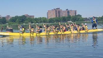 據介紹,紐約香港龍舟節已成為紐約市每年夏季最大型的戶外活動之一,今年將在8月6日及7日兩天,在法拉盛草原可樂娜公園湖上競賽,今年已進入26個年頭。這項活動每年都吸引成千上萬民眾前往觀賽,不少參賽隊伍都在週六及週日假期前往湖邊練習,隊員們身穿救生衣手持划槳在湖上奮力操練,雖然是賽前熱身,個個都很認真,鑼鼓齊鳴,百漿齊發,看起來十分有精神。