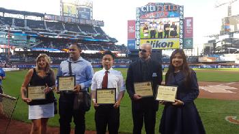 (紐約.羊展恬6日報導)紐約大都會職棒隊昨晚舉行「跨文化交流之夜」,在球賽開場前頒獎表揚兩社區華人機構及學生包括「跨文化暑期實習計劃簡稱(C.C.I.P.)」及「紐約幼獅電腦技術團隊」,感謝他們對社區的服務貢獻,分別由跨文化暑期實習計劃負責人暨楚琛及紐約幼獅電腦技術團隊會長周石麟代表領獎。