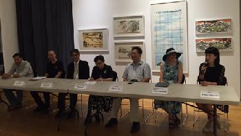 (紐約.留天佑/羊展恬7日報導)由紐約台北文化中心主辦,美國水墨協會(Sumi-e Society of America)協辦的「水墨意象:台、日、日美水墨交流展」昨日在曼哈頓揭幕,並舉行活動的說明會(圖)。展期至7月30日止。此次共計展出40餘幅作品,台灣國家藝文獎得主江明賢、黃光男、羅振賢,日本水墨名家石井成児、海野次郎、根本知等名家作品,都在展出之列。