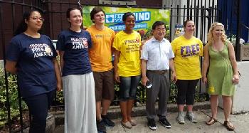 (紐約.羊展恬16日報導)為向社區各界宣傳市府及教育局在暑假期間在紐約市五區提供孩童免費的早午餐,市議員顧雅明昨日在法拉盛20小學校門前,與多位在20小學擔任義工的青年學生一起,提醒社區民眾,紐約市府自即日起到9月2日,在紐約市1200多個地點舉辦孩童免費早餐或午餐計劃。凡年齡在18歲或以下的孩童,都可在服務時間前往包括游泳池、學校、圖書館、公園、政府樓等地點,享用免費早餐或午餐。