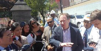 據瞭解,由於市交通局將在7月底開始,對法拉盛市中心行人道進行加寬等多項工程,消息傳出後引起社區民眾普遍關注,並對於施工期間的交通狀況可能造成市中心的的不便及商家的困擾,成為民眾關心焦點。為此,顧雅明昨日特別邀請市交通局(DOT)皇后區局長Nicole Garcia及紐約市設計及工程局(DDC)局長Feniosky Pena-Mora親自出席顧雅明辦公室舉行的記者會,向媒體說明並隨後前往市中心瞰察路況。
