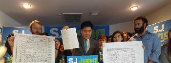 (紐約.羊展恬26日報導)正在參選第16選區州參議員席位的韓裔鄭勝振昨日舉行記者會,聲稱其競選對手現任民主黨州參議員史塔文斯基在此次參選的聯署簽名有誤,並指出史塔文斯基所提交的3515個簽名之中,其中3502個簽字有效性都存在著問題,僅有13個簽字認可,無法達到競選公職所需的最低門檻。這個消息也為此次法拉盛選區的州參議員選舉投下一顆「巨彈」,引發出不小的風波。