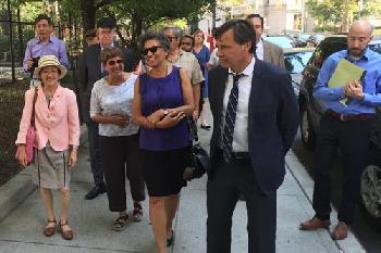 (紐約.留天佑28日報導)市衛生局日前公佈的一項調查顯示,紐約市老鼠的活動大幅減少,相信這對每個紐約人來說都是一個好消息。市衛生局長巴塞特(Mary Bassett)昨日巡視華埠哥倫布公園時(圖),更透露局方的「滅鼠奇招」。