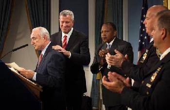他又讚揚布萊頓任內致力培養警隊人才,帶領紐約市創出有紀錄以來,最低的嚴重罪行罪案率。