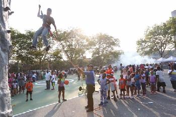 (紐約.留天佑3日報導)市警曼哈頓華埠5分局、7分局昨日下午響應總局宣導,在區內舉行年度「全國安全日」(National Night Out,圖)警民關係活動,廣邀各界到場燒烤,玩遊戲,欣賞醒獅表演,同時推廣社區安全、防騙防盜訊息,吸引數百僑胞到場同樂。