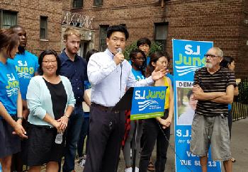 (紐約.羊展恬11日報導)第16州參議員選區民主黨參選人鄭勝振(S.J.Jung),昨日在法拉盛舉行記者會(圖),發表對皇后區面對可負擔房舍不斷減少的危機,並倡議政府應發展更多住房開發計劃,指責目前的政治領袖都缺乏解決問題的政治意願。