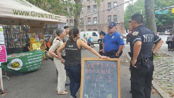 昨日在法拉盛楓葉大道公園正好為每週三的綠色農夫市場日,但公園內除了有家長帶著孩童在遊樂場上玩耍外,位於公園口柵欄邊的多個涼椅座位,出現了圍著一堆堆下棋及圍觀的華人民眾,只見不少人一邊抽煙一邊下棋,旁若無人,大聲喧嘩。由於受到民眾投訴,指出楓葉大道公園常有民眾聚賭現象,包括第七社區委員會經理畢特曼、紐約市成長機構(GrowNYC)公關經理Cathy Chambers、109分局社區事務組警探歐唐納(Kevin O’Donnell)等多位警員,昨日特地前往公園現場瞭解情況。警探歐唐納表示,楓葉大道公園的範圍與其他公園有些不同,位於凱辛納大道邊的公園柵欄外圍空地,也是公園的屬地,目前公園局放置了多個涼椅供民眾休憩,但卻成為許多華裔民眾群聚下棋場所,不少華人在公園內抽煙、喧嘩聚賭,引起眾多外裔人士的不滿,影響華人在社區的形象。