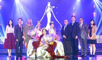 金神大賭場總裁兼總經理Ray Pineault與東方市場副總裁梁世傑及成員,見證2016美國華裔小姐誕生。紅星郭羨妮專程來美擔任特別嘉賓,見證美麗與智慧並重的佳麗,摘下后冠的珍貴時刻。