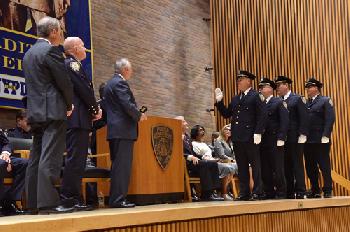 (紐約.留天佑31日報導)市警局長布萊頓昨日出席任內最後一次警務人員升職禮(圖),他感性地勉勵與會的警官不要忘記自己加入警隊的初衷,日後回望工作生涯,能夠毫不猶豫地說:「我作出的決定很重要」。