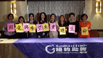 紐約勵馨昨日宣佈將在10月13日晚在法拉盛舉辦第12屆籌款餐會,圖為出席記者會慈善晚會籌備委員會代表,自左至右為勵馨總幹事劉元芬、勵馨執行董事張麗麗、馮智慧、翁張碧君、黃王美津、張麗芬、劉艾倫及林恩湛。(圖:羊展恬攝)