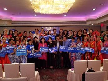 (紐約.羊展恬16日報導)近日民主黨總統候選人希拉莉的健康問題受到全美民眾的矚目,並對她的病情眾說紛紜,就在這個時候,來自大紐約地區支持希拉莉競選總統的華人組織「希拉莉亞太裔婦女志工團」(AAPI Women For Hillary)於昨日宣佈正式成立(圖),包括總團長楊海燕、總顧問沈毅、榮譽團長周燕霞、青年團團長繆曼羅、顧問雷迅等人,成員約150人。社區僑領福建會館代主席陳興合、希拉莉亞太裔青年專業團的團長陳易平等都出席支持該團隊的成立。