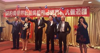 (紐約.羊展恬22日報導)受邀出席全美台灣同鄉聯誼會年會途經紐約的前中華民國副總統吳敦義夫婦及中國國民黨副主席郝龍斌,昨晚一起出席在法拉盛舉行的僑宴,來自美東地區黨員同志及支持者近300人出席,由僑領林映君主持,並帶領出席者高呼「國民黨加油」、「台灣加油」。