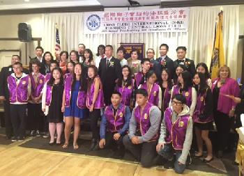 國際獅子會紐約法拉盛分會昨晚舉行新任會長暨職員就職典禮,圖為新一屆會長李雅濱與理事會、獅子會及小幼獅代表們合影。(圖:法拉盛獅子會提供)