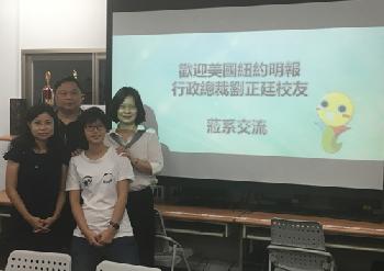 本此宗旨,並為廣納專才,紐約明報總裁劉正廷,日前特與本報駐台新媒體創意總監何彥廷博士,連袂重返其母校台灣淡江大學,並與資訊傳播學系系主任陳意文進行交流,希望與該系所相互配合,在全球性報業集團的支持和贊助下,讓學有專長懷抱理想的年輕一代,進入新媒體傳播職場,得以人盡其才發揮所長。