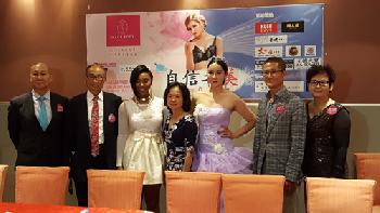 「2016自信之美.粉紅絲帶慈善內衣秀暨Make Body品牌十週年慶典」將在本月22日晚在法拉盛明都大酒樓舉行,圖為出席代表自左至右為:明都大酒樓總經理Mandy Chan、瑞福祥拍賣行代表張栗福、模特Stephanie、美華防癌協會華裔社區資深市場經理陳詩盈、環球華裔小姐中國區總冠軍江雪、Make Body公司董事長徐德新、Make Body公司總經理許志娟等人呼籲社區各界共襄盛舉。(圖:羊展恬攝)