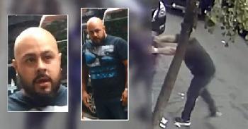 警方昨日公佈閉路電視錄像(圖),呼籲民眾協助指認一名年約20多歲,身高約6呎,重240磅左右的男子歸案。市警仇恨犯罪專案小組已介入調查。