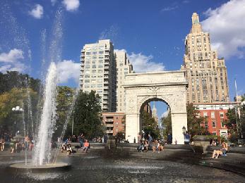 昨日在曼哈頓下城華盛頓公園(圖),有人脫去上衣,在噴水池邊享受日光浴。有遊人指,萬聖節都快到了,竟然還有80度,簡直不可思議。