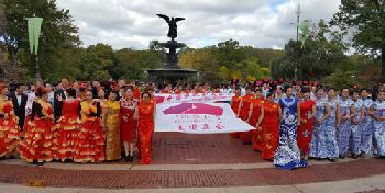 (紐約.羊展恬29日報導)中國旗袍會美國總會在會長謝安娜及正能量美女協會會長楊海燕等人率領及號召下,昨日在曼哈頓中央公園舉行一場特別的「旗袍快閃活動」,近130位來自大紐約地區婦女,身穿中國旗袍,向全世界講好中國故事。
