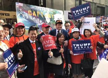 (紐約.留天佑31日報導)一批華裔民眾在曼哈頓中城舉行集會(圖),支持共和黨總統候選人川普。他們認為美國應強化法律與管治,杜絕非法移民與不勞而獲。