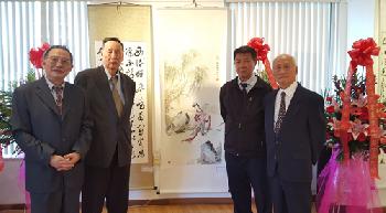 (紐約.羊展恬2日報導) 包括金煥明、周鴻忠、胡步洲、伍自覺4位書畫家在內的法拉盛華策會福壽老人中心書法班「四人中國書畫作品聯展」,自即日起到2日在法拉盛第一銀行畫廊展出作品,日前舉行開幕式,受到藝文界及書畫愛好者到場支持並對他們的作品給予好評。