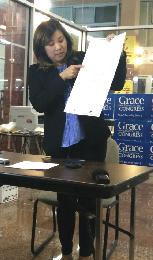孟昭文介紹,紐約州的選票上,選民可以票選總統、副總統、聯邦參議員、聯邦眾議員,州參議員、州眾議員與最高法院法官,居住在第6國會眾議員選區的選民可以在代表民主黨第一欄找到她的名字。
