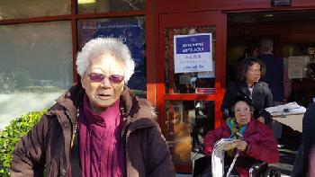 具有眾多華裔選民的公立20小學選舉站,昨日一大早就有不少華人民眾前往投票,到近中午時刻前往投票民眾不斷增加,選民都必須花上比平日更多的排隊時間輪流投票,讓負責翻譯中英雙語人員也供不應求,在該站服務的華裔譚順熙表示,比起上次總統大選確實投票人數比以往多,尤其是亞裔選民。高齡90歲的華裔阮老先生及坐著輪椅投票88歲袁女士及一位西語裔盲人選民,昨日也成為媒體記者爭相採訪的對象,兩位華裔耆老都是希拉莉的支持者,並認為希拉莉更能為亞裔爭取權益,而在亞裔選民集中的各個選票站,也有來自亞美法律援助處的義工在現場對選民進行民調,確保亞裔的權益受到保護。