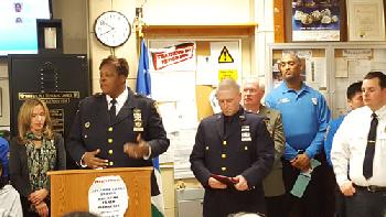 (紐約.羊展恬10日訊)109分局局長哈里森(左二)昨晚在警民會議上表示,法拉盛地區又再度出現4起類似金光黨的詐騙案件,損失都在數百到千元以上的金額,她呼籲社區民眾不要上當受騙,對於陌生人要求的個人資料都不要給,特別是信用卡或銀行卡的密碼。