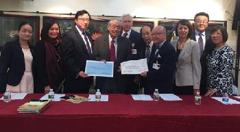 他在僑界的見證下,將1萬6120元善款捐贈給了紐約長老會下城醫院福安康寧華人社區保健計劃,另1萬1500元則捐助王嘉廉社區醫療中心。他說,希望這兩個為華裔社區,長期服務的醫療機構能繼續使命,令更多移民受惠。