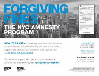 據介紹,這項計劃施行日期為9月12日至12月12日之間,紐約市將減少罰單罰款數目且免除罰款利息,商家或個人應在12月12日前付清罰單上的罰款數額。
